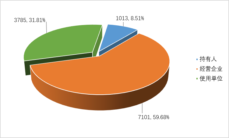截止2022年12月31日,全省医疗器械不良事件监测在线注册基层用户11899家。其中,医疗器械注册人备案人1013家,占用户总数的8.51%;经营企业7101家,占用户总数的59.68%;使用单位(医疗机构)3785家,占用户总数的31.81%(图1-3)。