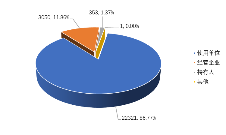 2022年,全省上报的医疗器械不良事件报告中,使用单位(医疗机构)的报告有22321份,占报告总数的86.77%,为报告的主体;经营企业报告3050份,占报告总数的11.86%;注册人备案人报告353份,占报告总数的1.37%,监测机构代报1份,占比不足0.01%(图2-1)。